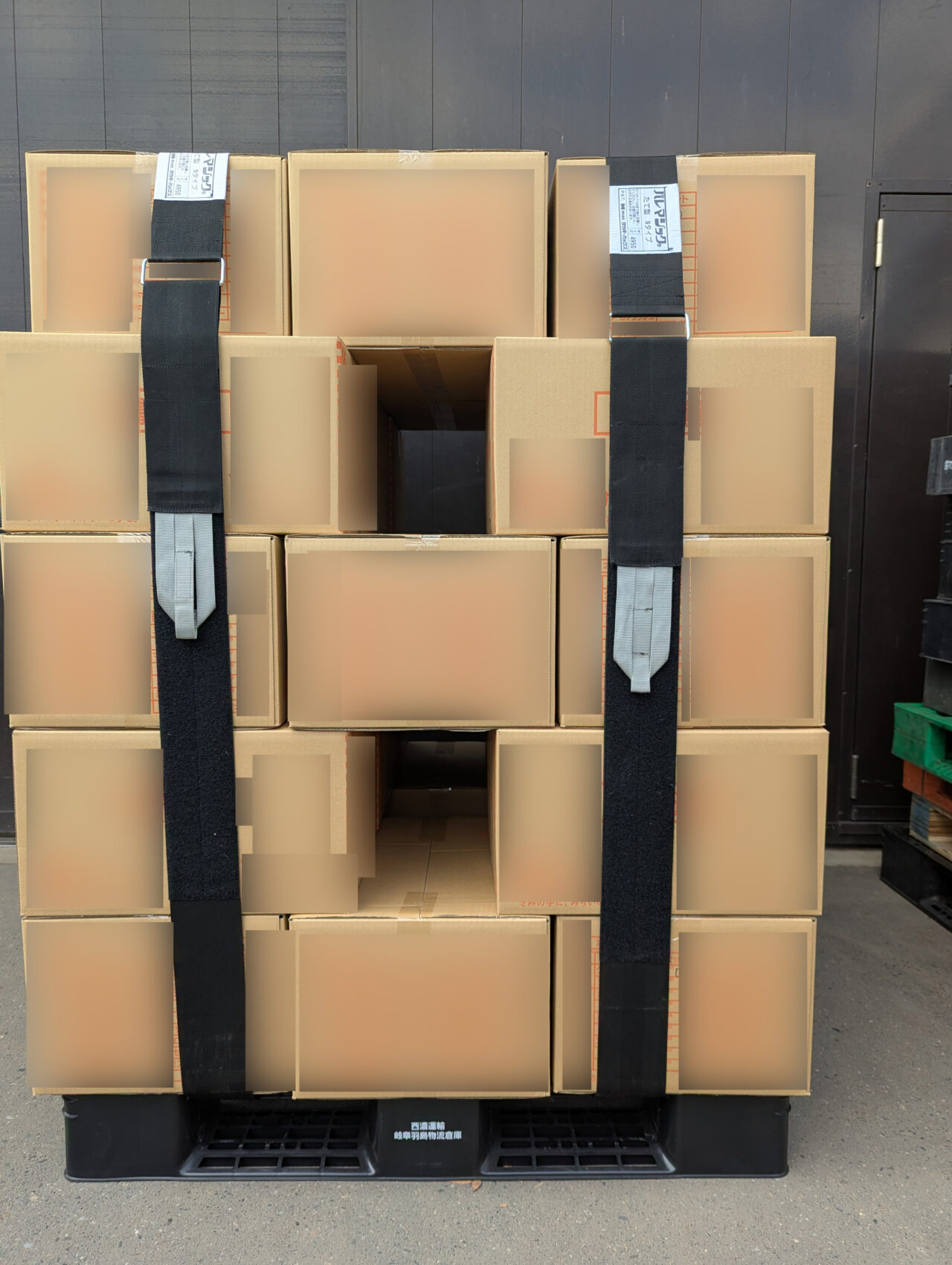 お得意先様への商品の納品の際にパレットに積み付けた商品にストレッチフィルムを巻いて輸送しておりましたが、